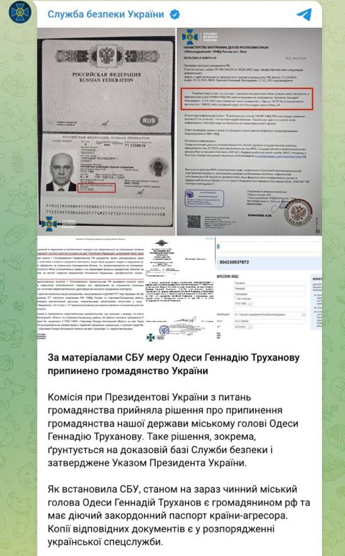 СБУ выкатило пост - якобы подтверждение, что у Труханова был русский паспорт и он вражина, как минимум снять с мэрства.Но знаете, если покопаться, то у 80 процентов сегодняшних "укро элитатариев" есть российские паспорта.Например у...