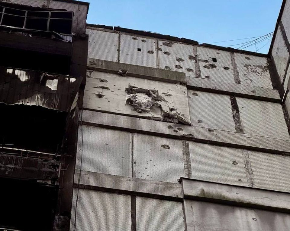 Судя по следам на фасаде многоквартирного дома, повреждения нанес маломощный боеприпас, начиненный поражающими