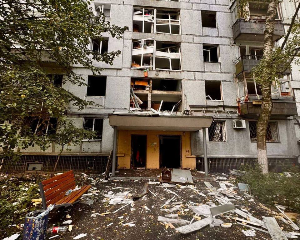Смею предположить, что такой след могла оставить ракета ПВО. Мы уже, к сожалению, не раз видели последствия от попадания ракеты, от неё сносит минимум целый подъезд.