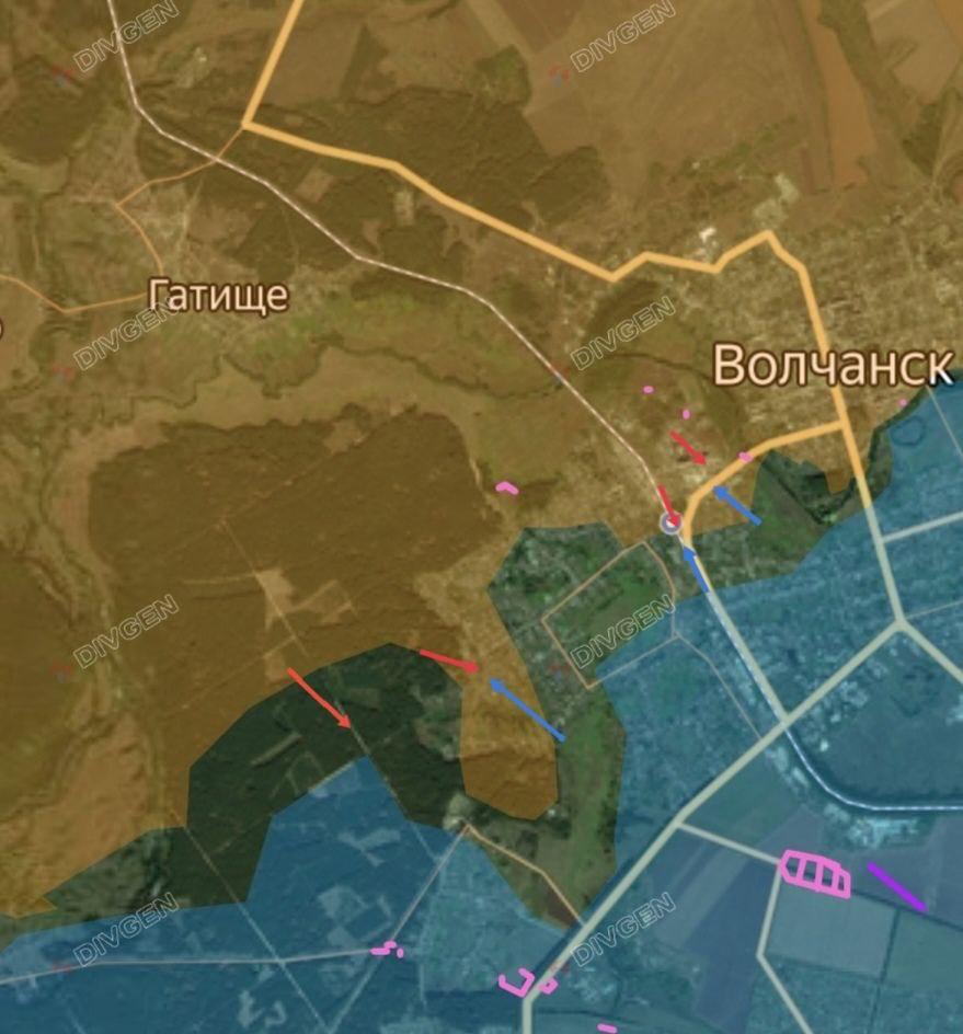 Подразделения ГрВ "Север" продолжают наступление на левом берегу р. Волчья в юго-западной части Волчанска и лесах западнее города к Синельниково.