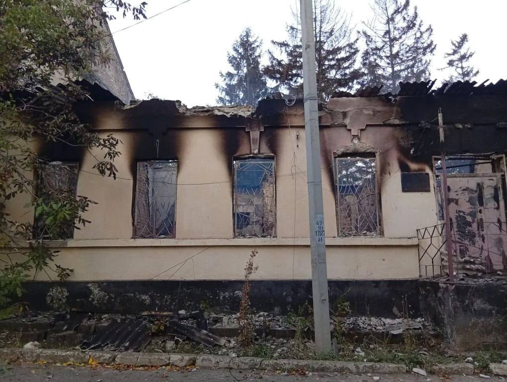 В результате удара по Новой Каховке загорелось неиспользуемое административное здание.