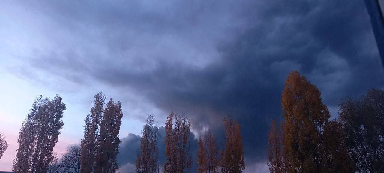 После взрывов мощный пожар и огромный столб дыма поднимается над Павлоградом
