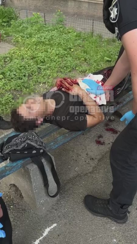 Теперь уже Дикий Днепр. Мужчина весь в крови лежит на пр. Поля. Полиция и скорая уже на месте.