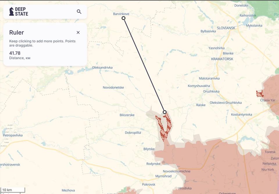 Накануне с украинской стороны начали массово раздаваться вопли о нашем прорыве к северу от Покровской агломерации - в сторону Доброполья. В результате 11-километрового (согласно украинским данным) рывка, ВС РФ вышли к северо-востоку от Доброполья, перерезав дорогу на Краматорск и Константиновку.