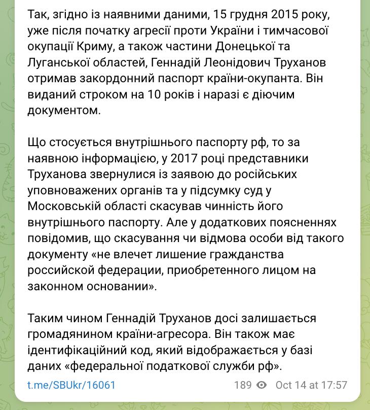 СБУ выкатило пост - якобы подтверждение, что у Труханова был русский паспорт и он вражина, как минимум снять с мэрства.