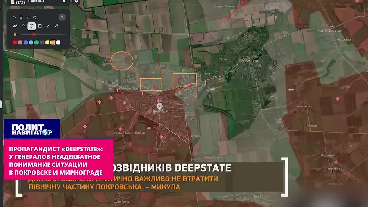 «В целом потеря Покровска [продолжаются бои на окраинах и в северной части] приведёт к окружению Мирнограда. Надо понимать, что в Мирнограде до сих пор остаётся довольно значительный гарнизон, который сдерживает противника, проводит контрмеры.И на одном из совещаний высшего военного руководства прозвучала такая фраза, что «если мы потеряем Мирноград, то враг окружит Покровск»...