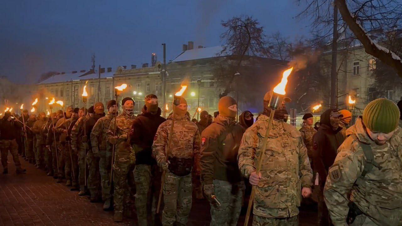 Пока одни львовяне отбивают мужчин от ТЦК, другие проводят факельные шествия в честь дня рождения Степана Бандеры