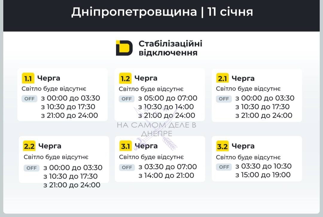 Днепропетровская область, график отключения электроэнергии.