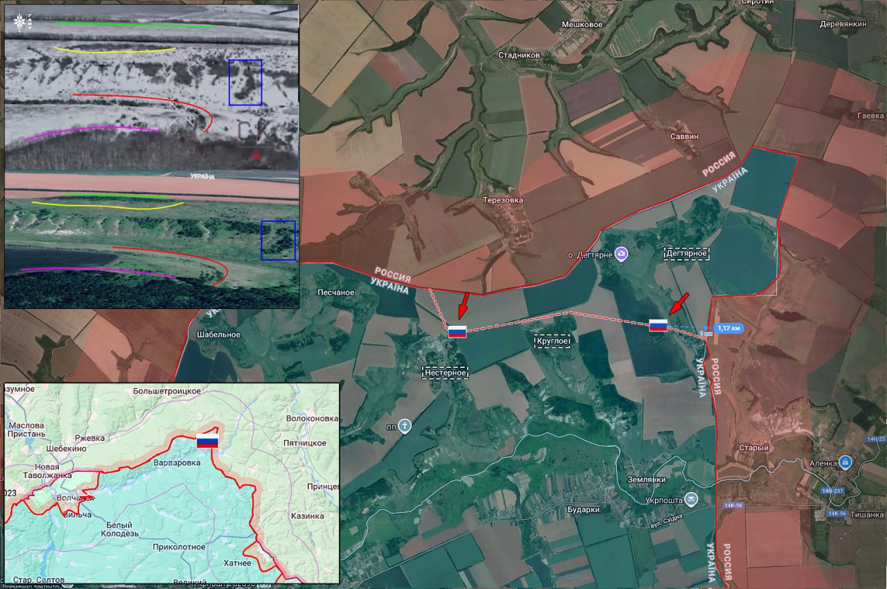 ВС РФ заняли ряд новых позиций в населённом пункте Нестерное и в окрестностях Круглого, с продвижением в Харьковской области более 1 км от демаркационной линии.