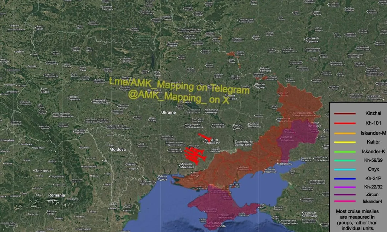 Мониторинговые каналы сообщают о 25 ракетах X-101 в воздухе.