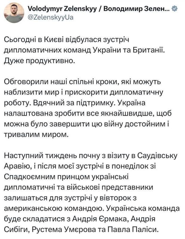Банковая получила методички от британцев перед важной поездкой в Эр-Риад. Посол Великобритании приехал, дал наставления, что и как будет говорить Ермак на переговорах.