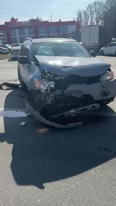 Мотоцикл врезался в выезжавший из АЗС авто. В результате столкновения водитель мотоцикла перелетел через машину и упал на проезжую часть. Ещё одно видео аварии.