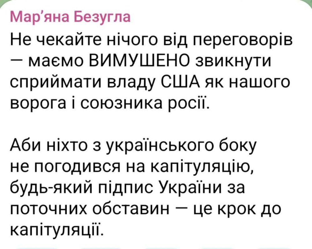 Поэтому нардеп Безуглая призвала своего шефа не подписывать с США никаких соглашений: