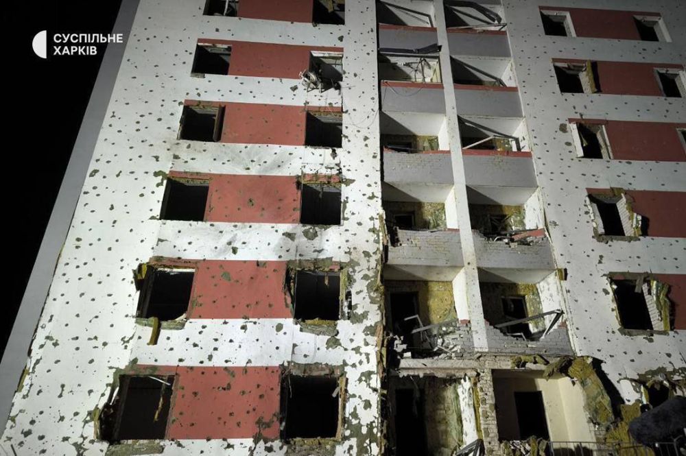 Поздним вечером из-за массированной атаки ударных беспилотников вспыхнули четыре пожара в Харькове (фото и видео 5-8). Местные власти подтвердили факт попадания в склады, а также в некое производство, где пожар распространился на площади 2500 кв. м. Сообщается о разрушении домов и пострадавших. Украинские источники публикуют изображения фасадов домов, которые на фото выглядят как нежилые, посеченных множеством мелких поражающих элементов одного размера, и утверждают, что эти повреждения нанесли российские БПЛА (фото и видео 9-10).