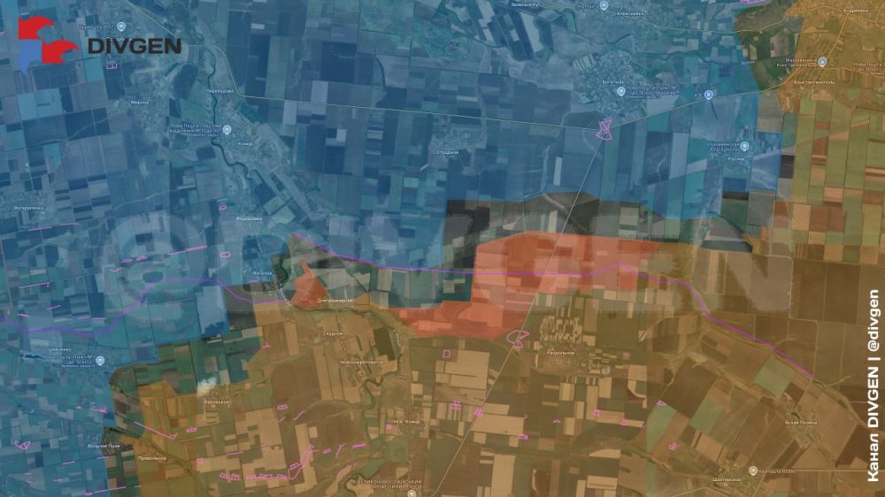 "Диванный Генштаб" сообщает ситуацию на участке Раздольное-Днепроэнергия. Российские силы продвинулись, заняв новые позиции и сместив линию фронта ближе к н.п. Комар и Богатырь.
