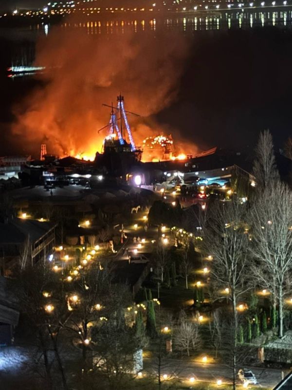 Сегодня ночью в Днепропетровске сгорел ярким пламенем отель "Бартоломео", в котором вот уже три года тусуются украинские генералы и иностранные кураторы войны против России.