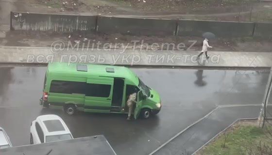 Днепр. Рекрутинг по стандартам НАТО. Людоловы запихивают людей в бусик, как бродячих собак. Хотя нет, бродячих собак, так не лупят по почкам, когда их отлавливают.
