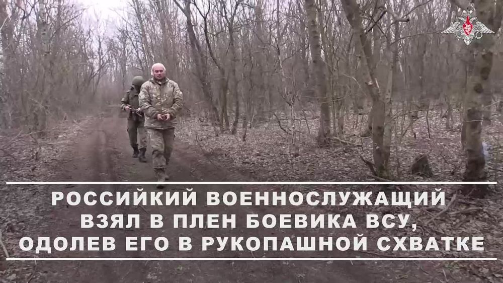 Украинский военный сначала взял в плен российского бойца, дале связавшись со своим начальством принял решение убить российского военного, но у него заклинило автомат. Этим воспользовался российский боец и победив в рукопашной схватке, пленил укро вояку...