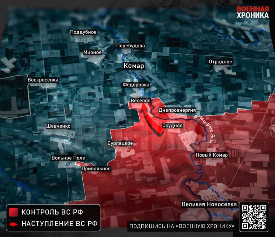 Однако промежуточная цель на этом этапе — выход к селу Комар, расположенному на перешейке перед трассой Н-15 Запорожье–Донецк, отмечает "Военная хроника":