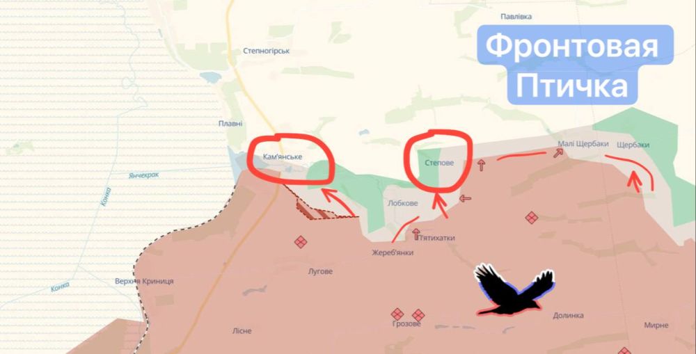 Запорожское оперативное направление. Продвижение Русской Армии в районе н.п. Лобковое, Степовое и Каменское