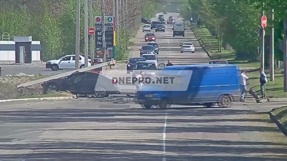 В Каменском BMW после столкновения с Mazda вылетел на обочину и снес электросопротивление