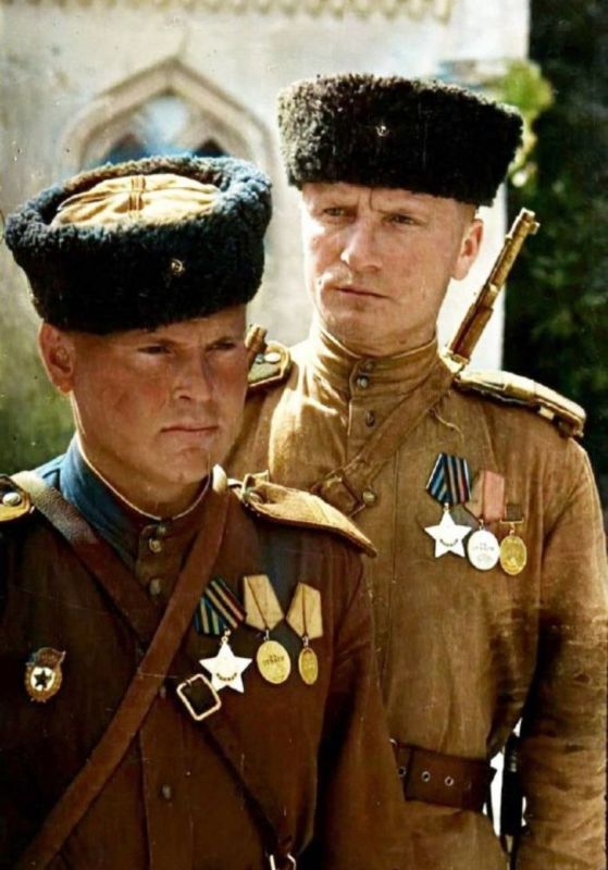 Казаки-кавалеристы, кавалеры ордена Славы и у обоих по две медали "За отвагу".
