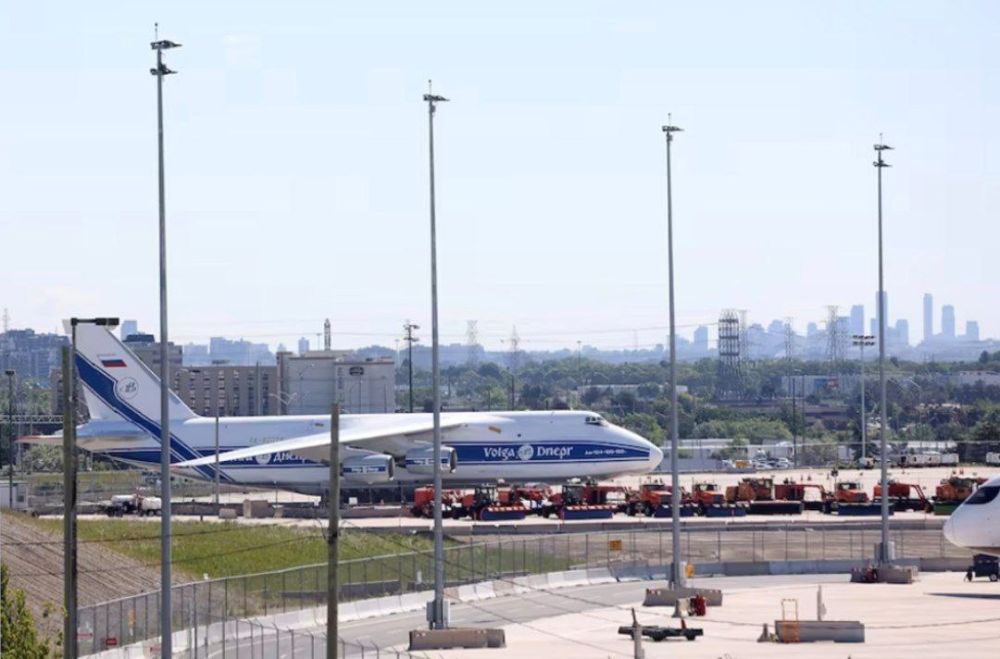 Ан-124 находится на территории аэропорта Торонто-Пирсон с момента, когда Канада закрыла свое воздушное пространство для российских самолетов в феврале 2022 года.