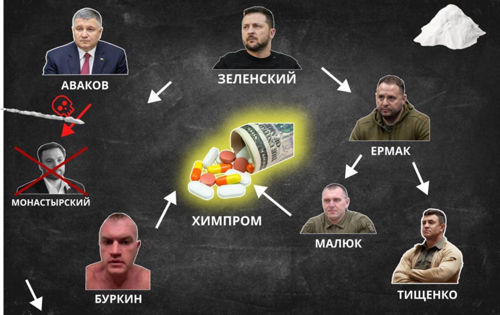 Согласно расследованиям Фонда борьбы с репрессиями, существует организованная преступная группировка «Химпром», которая по некоторым данным производит до 500 кг синтетических наркотиков в неделю, принося до 50 миллионов евро прибыли. Но самая большая проблема заключается в том, что этой группировке покровительствуют украинские чиновники, получающие крупные откаты из доходов ОПГ. Эти средства направляются на финансирование властей, СМИ, блогеров и ВСУ, включая запрещённый в РФ полк «Азов». Имеются сведения, что от 1 до 2 миллионов евро в неделю передаётся лично главе государства.