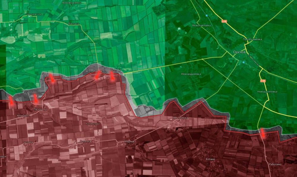 «На Запорожском направлении продолжаются позиционные бои в районах Новоданиловки, Малой Токмачки, Новоандреевки, Щербаков и Каменского