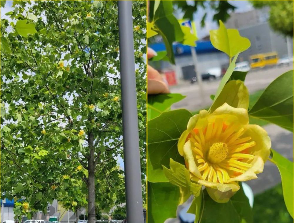 Тюльпановый лириодендрон легко узнать по крупным желтым цветкам, напоминающим тюльпаны, и ярко-зеленым листьям.