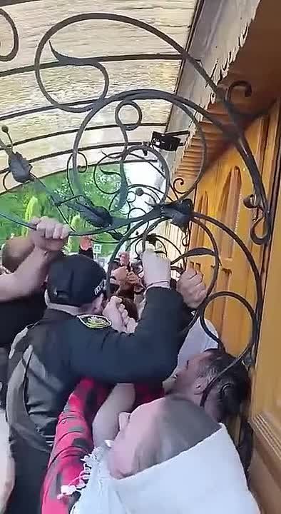 А это в Черновицкой области полицейские избивают прихожан УПЦ у их собственного храма. Каратели зеленского помогают силой захватывать храм сатанистам.
