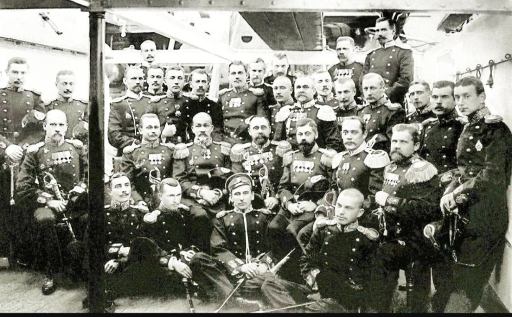 Офицеры броненосца «Князь Суворов», 1904 год. В центре группы – командир броненосца, капитан I-го ранга В. В. Игнациус, рядом с ним , слева – капитан II-го ранга Кладо.
