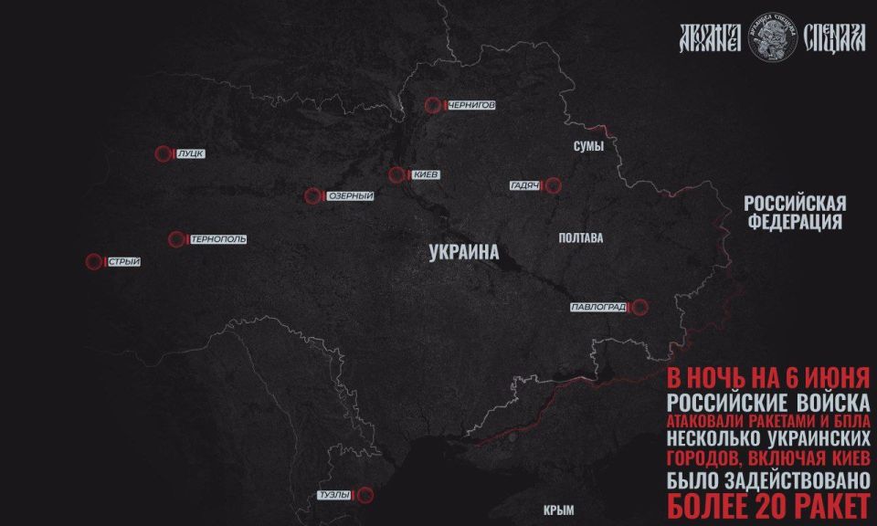 Прошедшей ночью наши войска провели комбинированную массированную атаку по украинской территории, ударив по не менее 9 городам, включая Киев, Луцк, Тернополь, Чернигов.