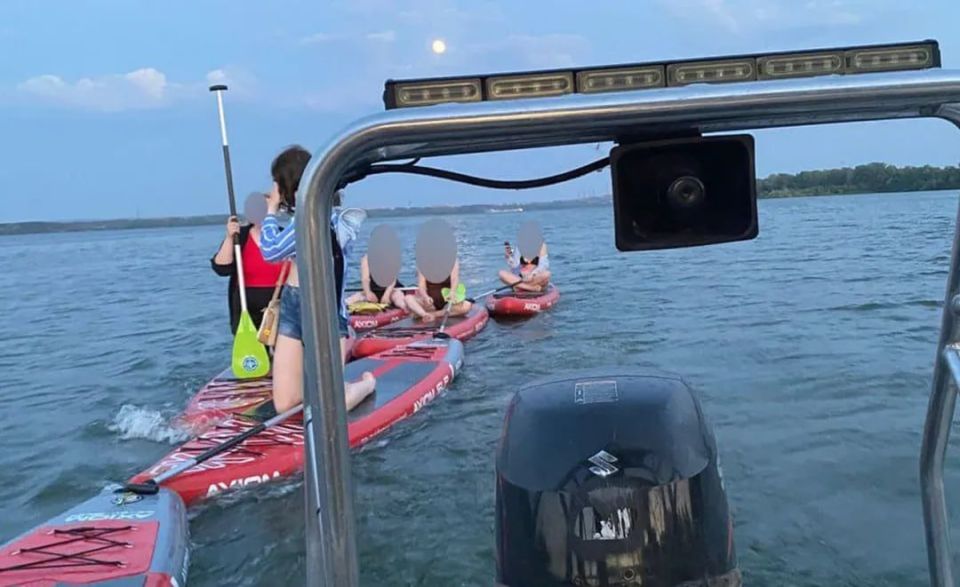 В Днепропетровские отдыхающие туристки заплыли на середину реки Днепр на SUP-досках, но из-за непогоды не смогли плыть дальше.