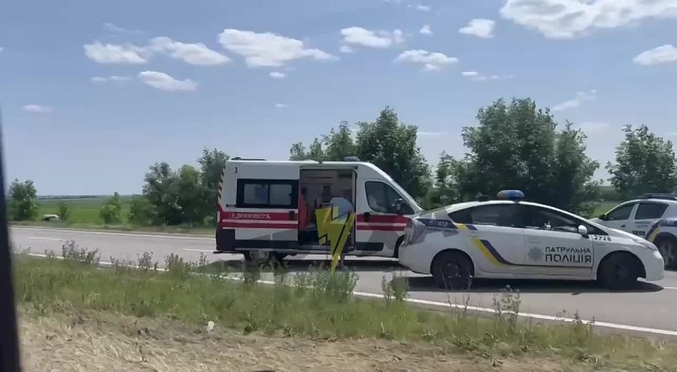 На Криворожской трассе взорвалось колесо у фуры с цистерной, после чего машина влетела во встречный «Ниссан» и перевернулась.