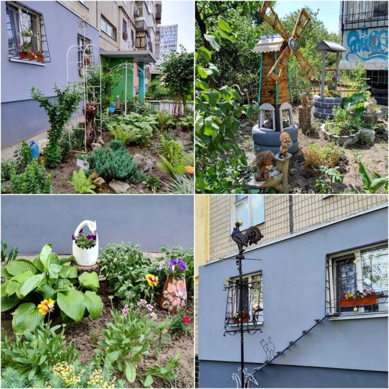 В Днепропетровске жители многоэтажки в ЖК «Солнечный» превратили территорию возле подъездов в цветущий сказочный дворик.