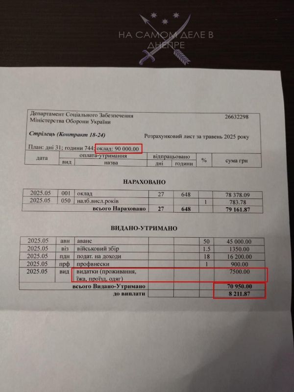 В итоге после налогов, профвзносов и «расходов на еду, проживание и одежду» ему выплатили всего 8211 гривен.