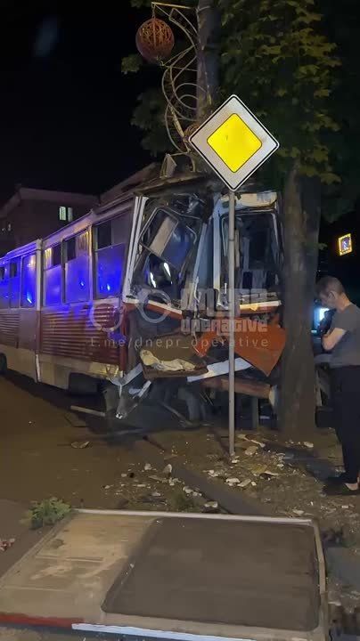 Вчера поздно вечером в Кривом Роге трамвай сошел с рельсов и врезался в дерево.