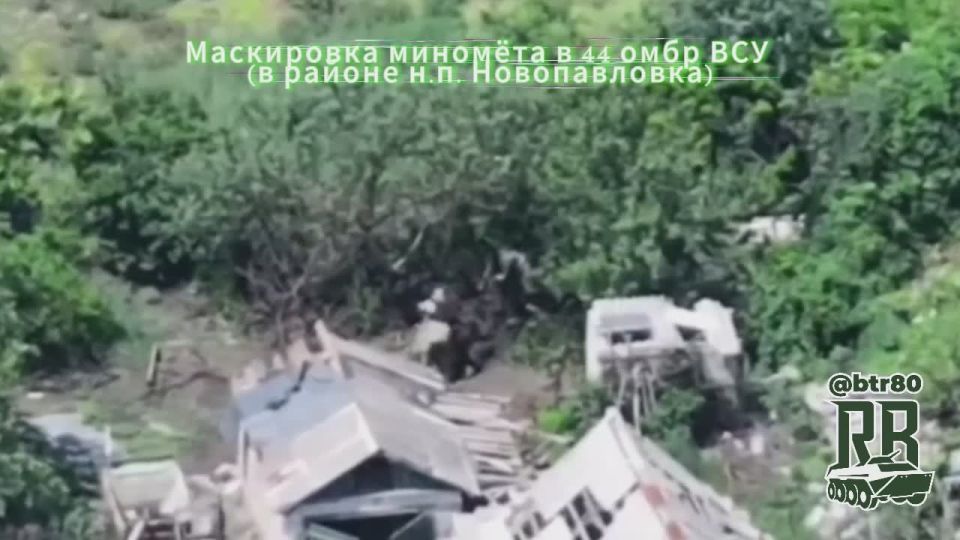 Наши зоркие дроноводы обнаружили миномётный расчёт противника в районе н.п. Новопавловка. Украинские солдаты старательно маскировали своё орудие, забрасывая его срезанными ветками. По итогу, прилетела наша птичка и утилизировала миномёт врага.