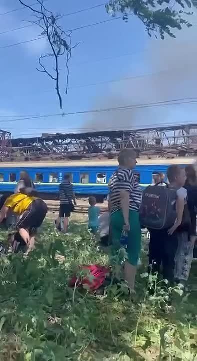Очевидцы из числа пассажиров публикуют в соцсетях кадры с места происшествия — на видео видно полностью разрушенное украинское предприятие, где находилась военная цель. Сейчас там клубится густой дым.