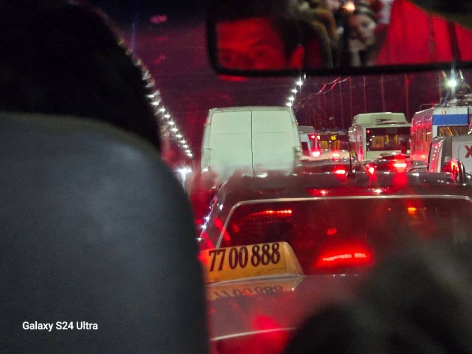 Ужасный затор на Новом мосту из-за ДТП. С правого на левый берег стоит все.