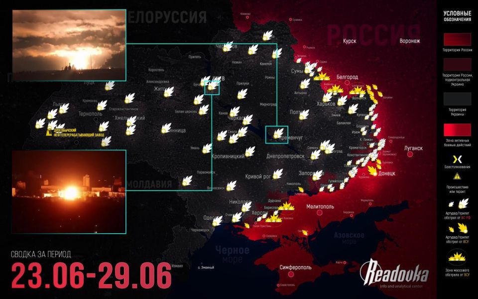 Но пока эти события гремят на границе ДНР с Днепропетровщиной, не менее интересная ситуация разворачивается на другой границе республики, с Харьковщиной, у Оскола. Там, на Краснолиманском направлении, ВСУ почти незаметно для себя оказались в зоне риска быть прижатыми к полноводной реке с уничтоженной переправой. Решить эту выскочившую проблему противник задумал, прибегнув к козырям — бросив подготовленную и мотивированную часть «азовцев»*. А кроме того, на уходящей неделе продолжали чертиться сюжетные линии Сумского и Константиновского направлений. Как это происходило — читайте в итоговой сводке Readovka.