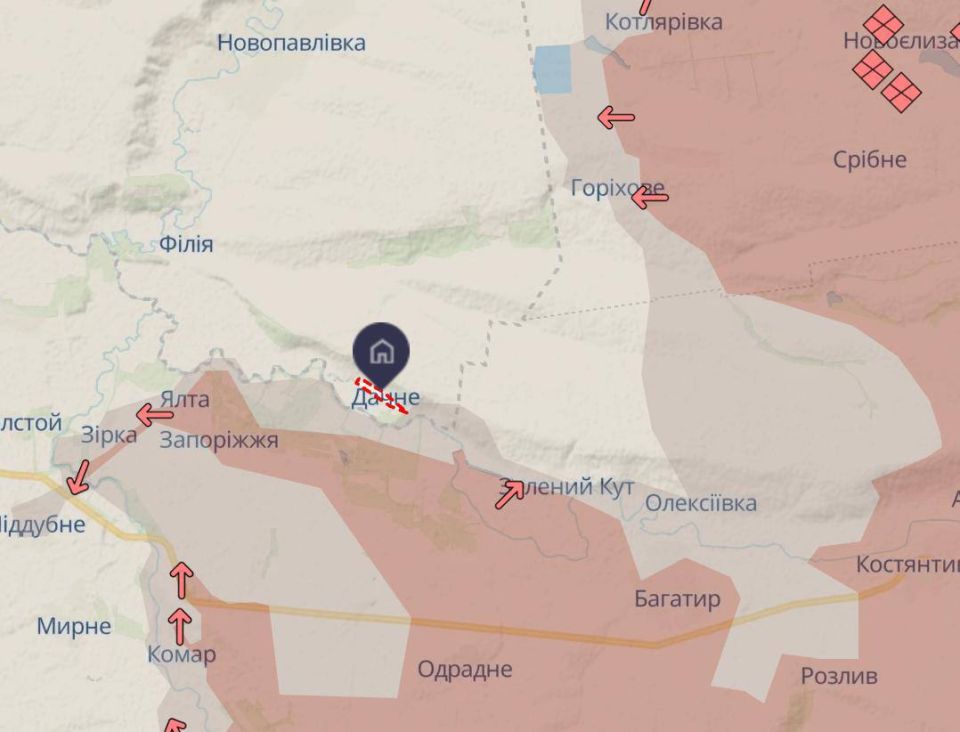 Генштаб официально утрату Дачного не подтверждал. На карте Deep State Дачное находится под контролем ВСУ, а минимальный участок на краю села в серой зоне»