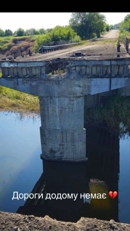 Уничтоженный мост через реку Волчья в районе н.п. Андреевка-Клевцово на границе ДНР и Днепропетровской.