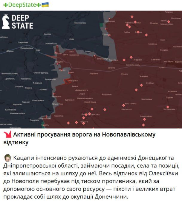 Украинский агрегатор информации на карте боевых действий Deep State заявляет, что командиры ВСУ на местах докладывают ложную информацию о ситуации на границе Днепропетровской области, что может привести к катастрофическим последствиям.