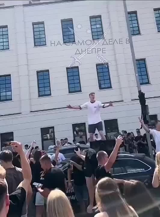 В Варшаве куча молодых украинцев до 22 лет радуются решению Верховной Рады о разрешении на выезд 18-22-летних из Украины. Под русскую песню Макса Коржа «Дорога в Амстердам».