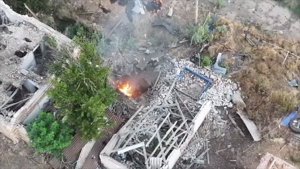 Кроме того, российские операторы БпЛА уничтожили опорный пункт ВСУ в подвале разрушенного здания. В результате поражения FPV-дронами вход в опорный пункт был завален и загорелся. В результате чего, по данным разведки не менее 5 украинских националистов были ликвидированы.