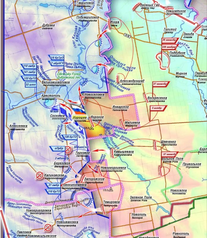 Со стороны укро-атлантистов штаб сталкивается с другими проблемами помимо разрыва логистики на фронте Гуляйполя, в частности с уменьшением артиллерийской поддержки и особенностями местности — это сельская степь без крупных населённых пунктов и значительных водных объектов, на которых можно было бы закрепить новую линию обороны.