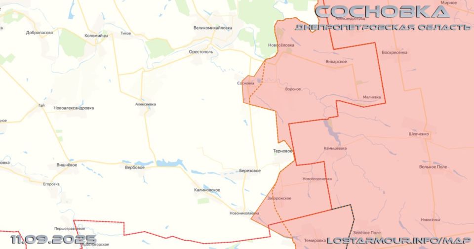 ВС РФ освободили десятый населенный пункт в Днепропетровской области - Сосновку. Одновременно с этим идут бои за Новониколаевку.