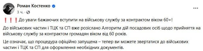 Нардеп Костенко радостно объявил, что теперь мужчины 60+, которые хотят служить в ВСУ, будут иметь такую возможность.
